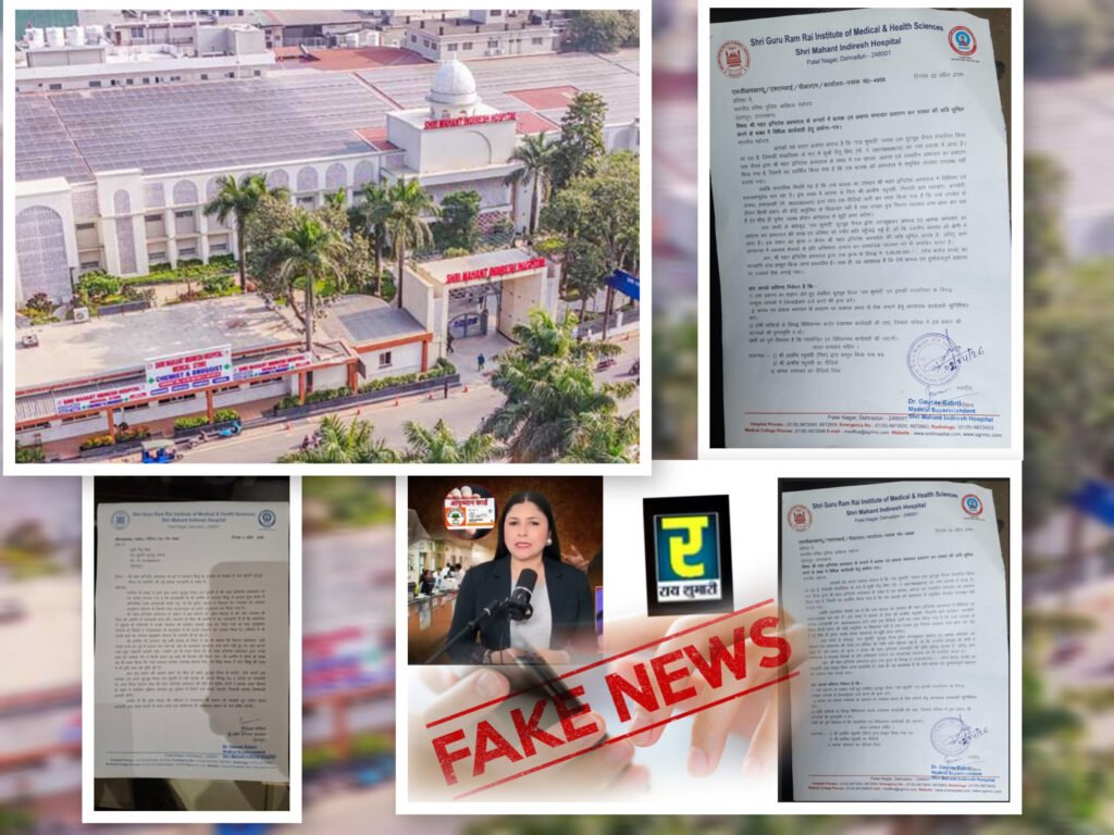बात ये है कि गलत खबर वायरल करने के लिए “राय शुमारी” यूट्यूब चैनल एवं इसकी संचालिका के विरुद्ध उपयुक्त धाराओं में एफआईआर दर्ज करने कि माँग ‘राय शुमारी’ यूट्यूब चैनल की झूठी खबर की पोल पट्टी खुली श्री महंत इन्दिरेश अस्पताल ने वरिष्ठ पुलिस अधीक्षक को तहरीर देकर राय शुमारी यूट्यूब चैनल पर कड़ी…