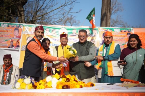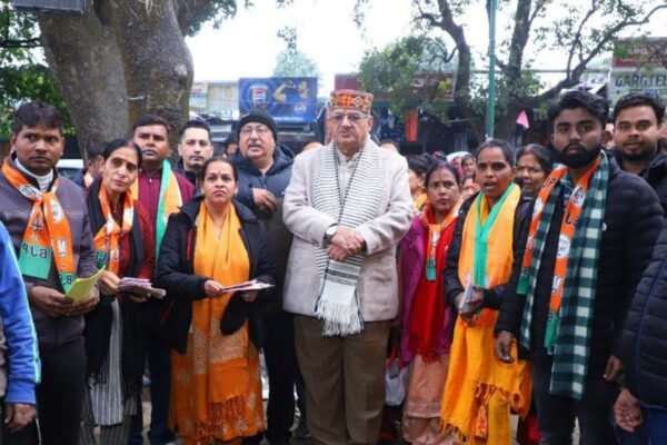 मसूरी में आगामी चुनाव के दृष्टिगत वाल्मीकि समाज के लोगों के साथ संवाद कर भाजपा के पक्ष में मतदान की अपील करते कैबिनेट मंत्री गणेश जोशी
