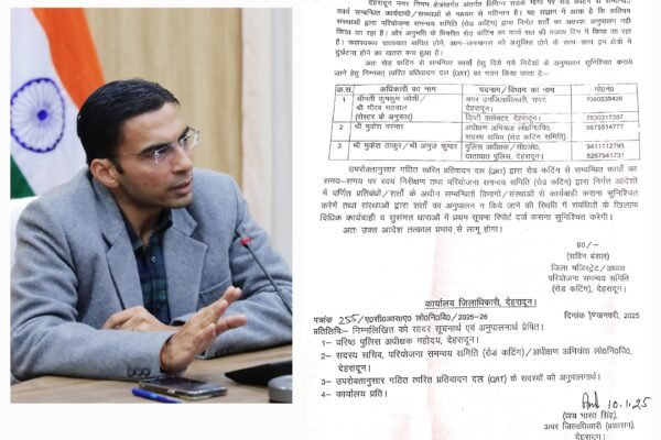 रोड़ कटिंग शर्तों का उल्लंघन करने वालों पर दर्ज होंगे मुकदमें। देहरादून दिनांक 10 जनवरी 2025,(जि.सू.का), जिलाधिकारी सविन बंसल ने अनुमति के विपरित निर्माण कार्यों की शिकायत पर कड़ा एक्शन लेते हुएद रोड़ कटिंग कार्यों की प्रभावी मॉनिटिरिंग हेतु क्यूआरटी का गठन कर लिया गया है। निर्माण कार्यों हेतु रात्रि में दी गई अनुमति…
