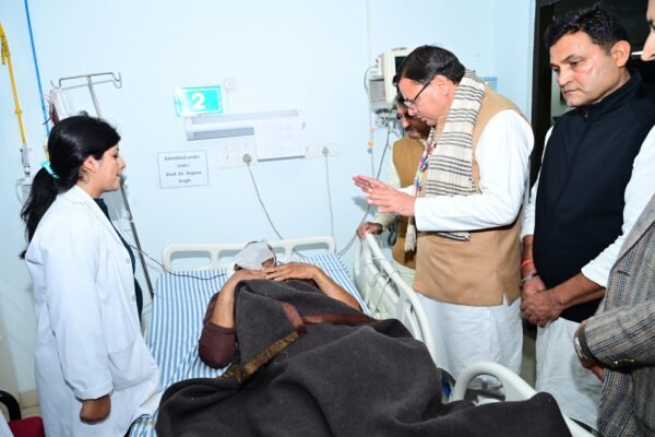 धामी सबसे पहले सुशीला तिवारी अस्पताल पहुंच भीमताल में बस दुर्घटना में घायलों से मुलाकात की कहा घायलों की हर संभव मदद की जाएगी।