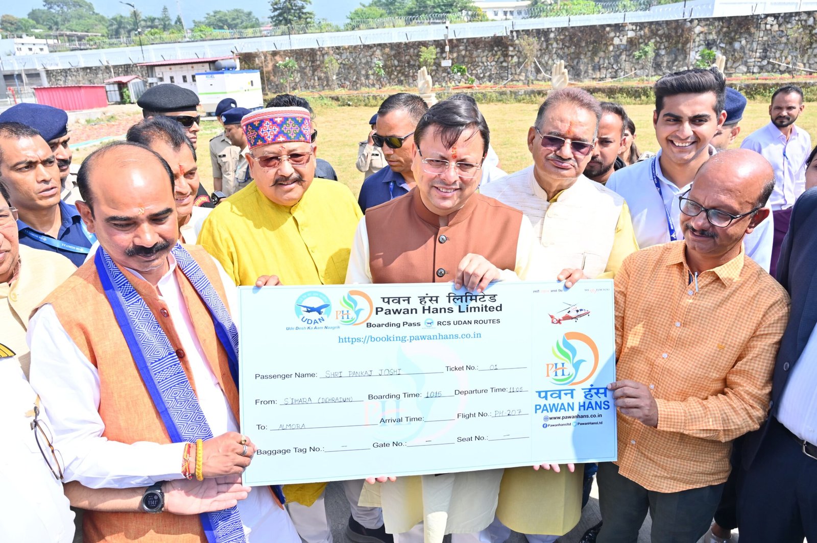 मुख्यमंत्री ने कहा कि उड़ान योजना के अंतर्गत देहरादून से अल्मोड़ा के बीच हेली सेवा से एक ओर पर्यटन, आर्थिकी, रोजगार स्वरोजगार को बढ़ावा मिलेगा तो वहीं हमारी मातृशक्ति जो उत्पाद बना रही है उनको भी निश्चित ही इससे लाभ मिलेगा। मुख्यमंत्री ने कहा कि बेहतर कनेक्टिविटी के साथ ही हम सबके जीवन में एक बेहतर बदलाव लाने का काम भी यह सेवा करेगी।