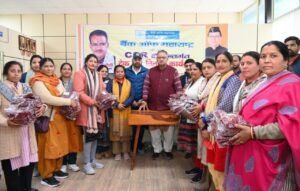 पीएनबी बैंक के सीएसआ मद के अंतर्गत राजकीय इंटर कॉलेज, डोभालवाला के छात्र-छात्राओं को स्वेटर वितरित करते कैबिनेट मंत्री गणेश जोशी
