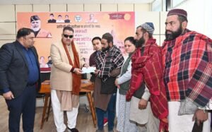 मंत्री गणेश जोशी ने मालसी रेंज के अन्तर्गत गल्जवाडी बीट के क्षेत्रान्तर्गत स्थित मराड़ी तोक गुर्जर बस्ती में गुलदार हमले के पीड़ित परिवार जनों को कैंप कार्यालय में 06 लाख रुपए की मुआवजा राशि का चैक प्रदान किया गया