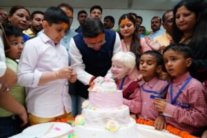मुख्यमंत्री धामी ने दृष्टिबाधितार्थ बच्चों संग केक काटकर जन्मदिन मनाया