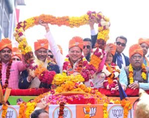सीएम धामी ने हरिद्वार में मेयर प्रत्याशी के पक्ष में किया रोडशो जनता से की भाजपा के प्रत्याशी को वोट देने की अपील