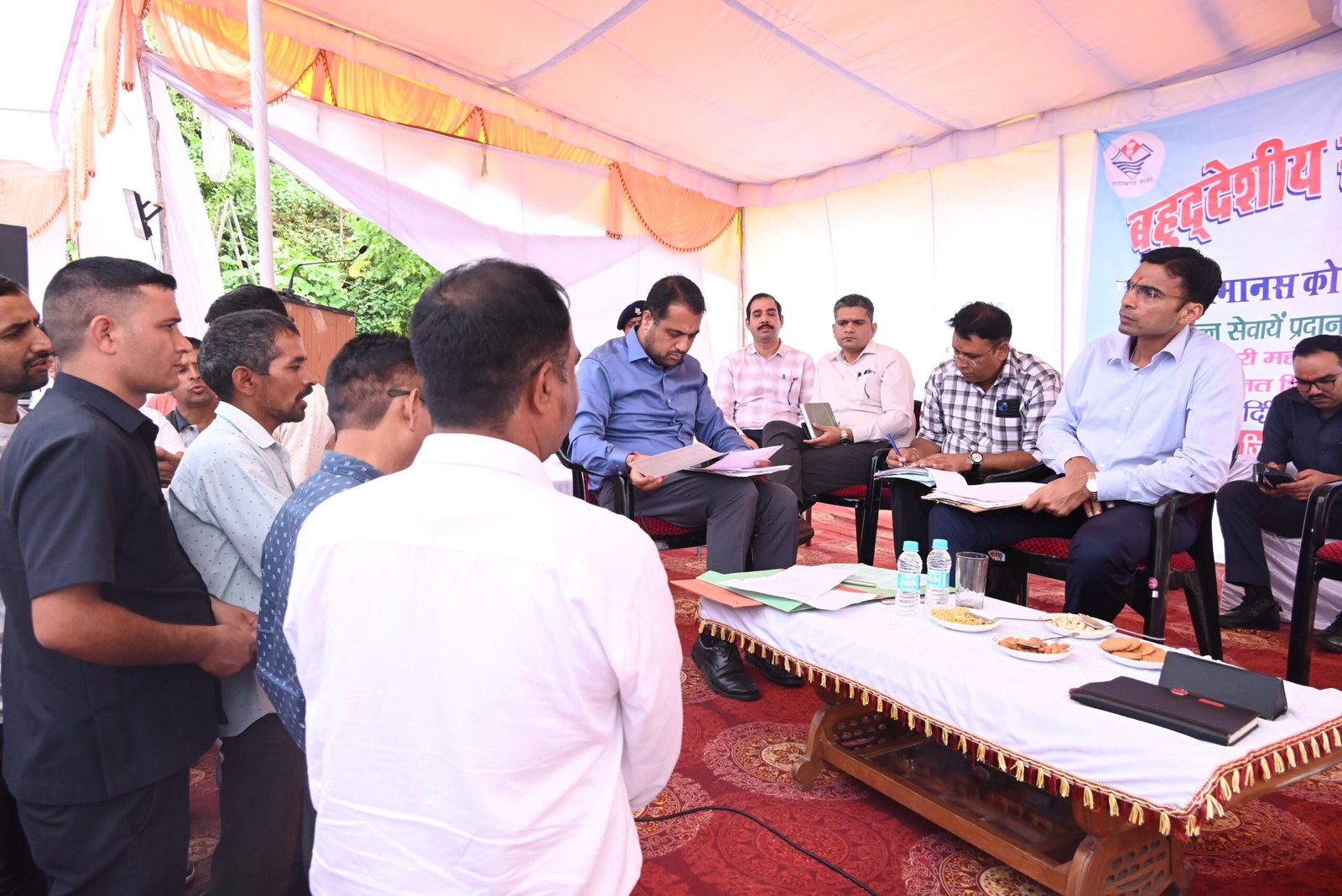 सरकार जनता के द्वार कार्यक्रम के अंतर्गत जन समस्याओं का सुगमता से निराकरण हेतु जिलाधिकारी सविन बंसल की अध्यक्षता में मंगलवार को विकासखंड कालसी के सुदूरवर्ती क्षेत्र उटैल के बैसोगिलानी में वृहद बहुउद्देशीय शिविर आयोजित किया गया। शिविर में ग्रामीणों ने 166 समस्याएं एवं शिकायत दर्ज की। जिलाधिकारी ने सभी समस्याओं को गंभीरता से सुनते हुए 56 शिकायतों का मौके पर ही समाधान किया तथा विभाग एवं शासन स्तर की समस्याओं का प्राथमिकता पर निस्तारण हेतु संबंधित अधिकारियों को निर्देश दिए। शिविर में 442 से अधिक लोगों की निःशुल्क स्वास्थ्य जांच, 25 आयुष्मान कार्ड, 10 दिव्यांग, 15 आधार कार्ड एवं अन्य प्रमाण पत्र मौके पर निर्गत करने के साथ ही क्षेत्रवासियों को जनकल्याणकारी योजनाओं की जानकारी भी दी गई। इस दौरान जिलाधिकारी ने शिविर में लगे स्टॉलों का निरीक्षण भी किया और जनता से विभागीय योजनाओं का लाभ उठाने का आवाहन किया।