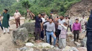 गाढ; गदेरे ढौंड ढंगार पार कर सरकार के प्रथम रिस्पांडर के रूप में डीएम पहुंचे आपदा प्रभावित परिवारों के पास।