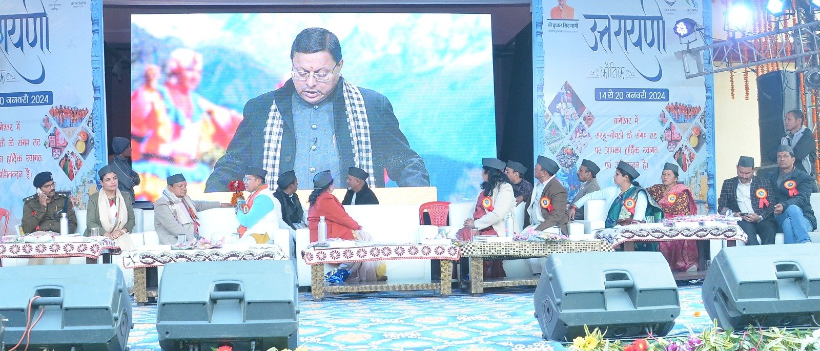 मुख्यमंत्री ने कहा कि अन्य कार्यक्रमों के पूर्व नियोजित होने व शासकीय कार्यों की व्यस्तता के चलते वे खुद मेले में पहुंच नहीं पाए। उनकी हार्दिक इच्छा थी कि वे मेले में स्वयं आएं। उन्होंने देवभूमि के लोकपर्व उत्तरायणी और मकर संक्रांति की शुभकामनाएं देते हुए कहा कि कुमाऊँ की काशी, बागेश्वर में बाबा बागनाथ के मंदिर की छांव तले, सरयू गोमती और अदृश्य सरस्वती नदी के संगम तट पर आयोजित होने वाले उत्तरायणी मेले की आप सभी को बधाई देता हूँ। उन्होंने कहा मकर संक्रांति एकमात्र पर्व है, जिसका आध्यात्मिक और वैज्ञानिक दोनों ही दृष्टियों से व्यापक महत्व है। कहा कि उत्तरायणी मेले ने लोगों को जोड़ने का कार्य किया है। मकर संक्राति के पावन अवसर पर पतित-पावनी सरयू नदी खासकर त्रिमाघी स्नान के साथ पौराणिक बागनाथ मंदिर में पूजा-अर्चना का पौराणिक काल से ही विशेष धार्मिक महत्व रहा है। राष्ट्र और संस्कृति को प्रत्यक्ष रूप से जानने का अवसर प्रदान करने वाला यह सांस्कृतिक मेला, निश्चित रूप से हमारी आगामी पीढ़ी के लिए सामाजिक समरसता को प्रगाढ़ करने का कार्य करेगा। उन्होंने स्वतंत्रता सेनानी बद्री दत्त पांडे समेत कई सेनानियों को नमन करते हुए कहा कि उनकी प्रेरणा से कुली बेगार जैसी कुप्रथा का अंत हुआ। मुख्यमंत्री ने उत्तराखंड राज्य को सर्वश्रेष्ठ राज्य बनाने के लिए प्रत्येक व्यक्ति का योगदान और स्वच्छता को संस्कार के रूप में अपनाने की भी जनता से अपील की।