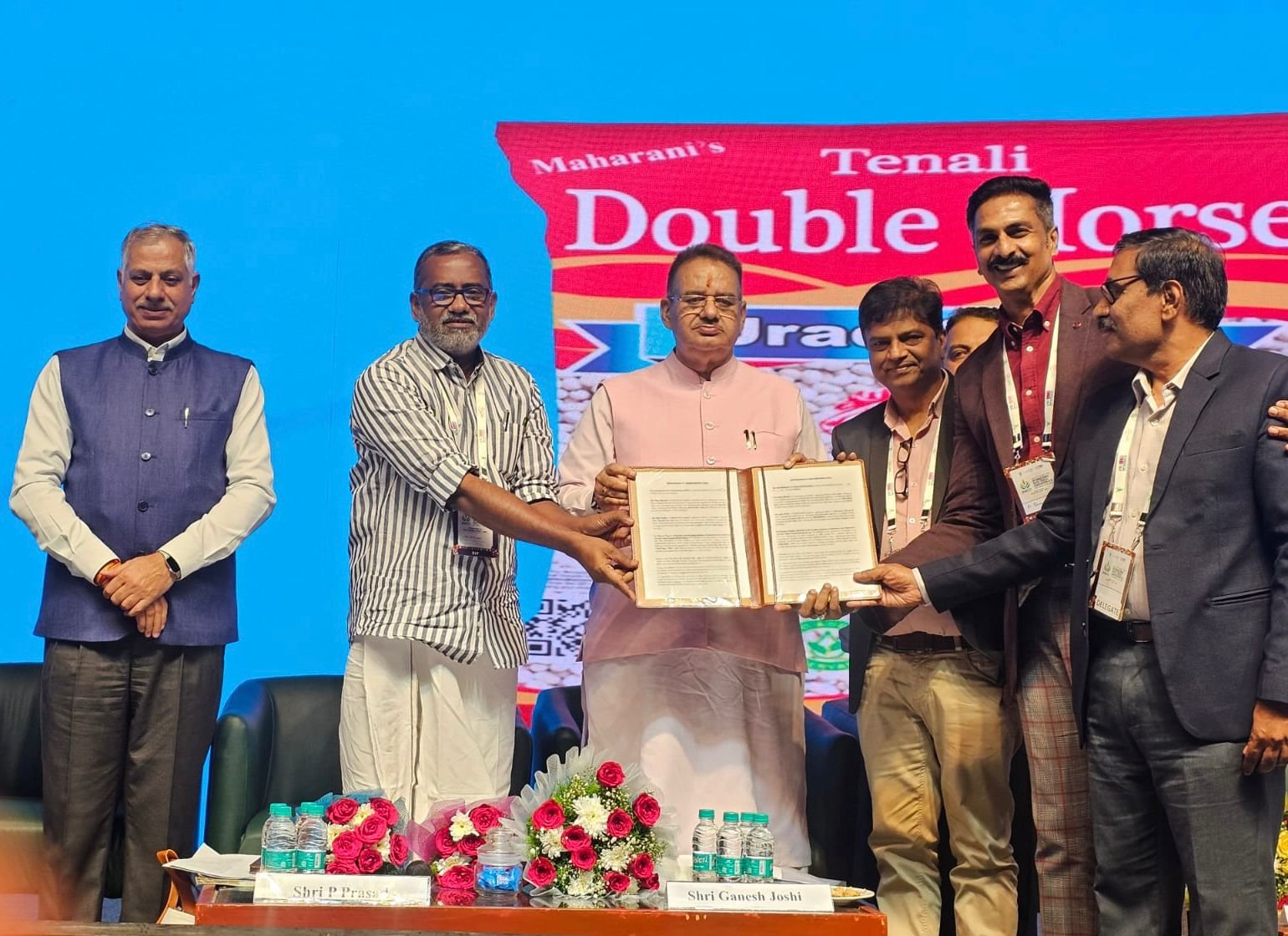 प्रदेश के कृषि मंत्री गणेश जोशी ने हैदराबाद में 17 से 19 अक्टूबर तक आयोजित 6वें अंतर्राष्ट्रीय पोषक अनाज सम्मेलन 2024 में बतौर मुख्य अतिथि प्रतिभाग किया। सम्मलेन में केरल के कृषि मंत्री पी0 प्रसाद ने बतौर विशिष्ट अतिथि प्रतिभाग किया। इस अवसर पर प्रदेश के कृषि मंत्री गणेश जोशी ने दीप प्रज्ज्वलित कर सम्मलेन का शुभारंभ किया। इस दौरान उन्होंने सम्मलेन में लगाई गई मिलेट्स प्रदर्शनी का रिबन काटकर उद्घाटन किया और स्टालों का अवलोकन किया। उन्होंने मिलेट्स के पोषक तत्वों और भविष्य के लिए मोटे अनाजों को मुख्यधारा में लाने की प्रतिबद्धता पर आधारित पुस्तक का भी विमोचन किया। इस दौरान मावी न्यूट्रीशिनल और आईआईएमआर के बीच एमओयू में भी हस्ताक्षर हुआ।