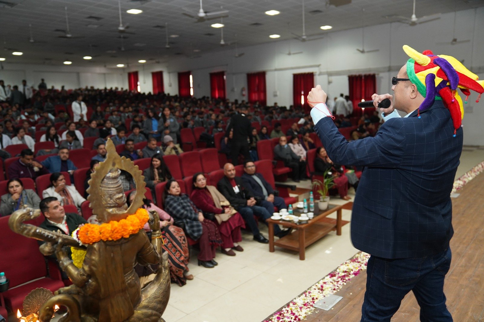 वल्र्ड रिकाॅर्ड होल्डर के साथ लाफ्टर योग सैशन में फेकल्टी और छात्र-छात्राएं लोटपोट हुए