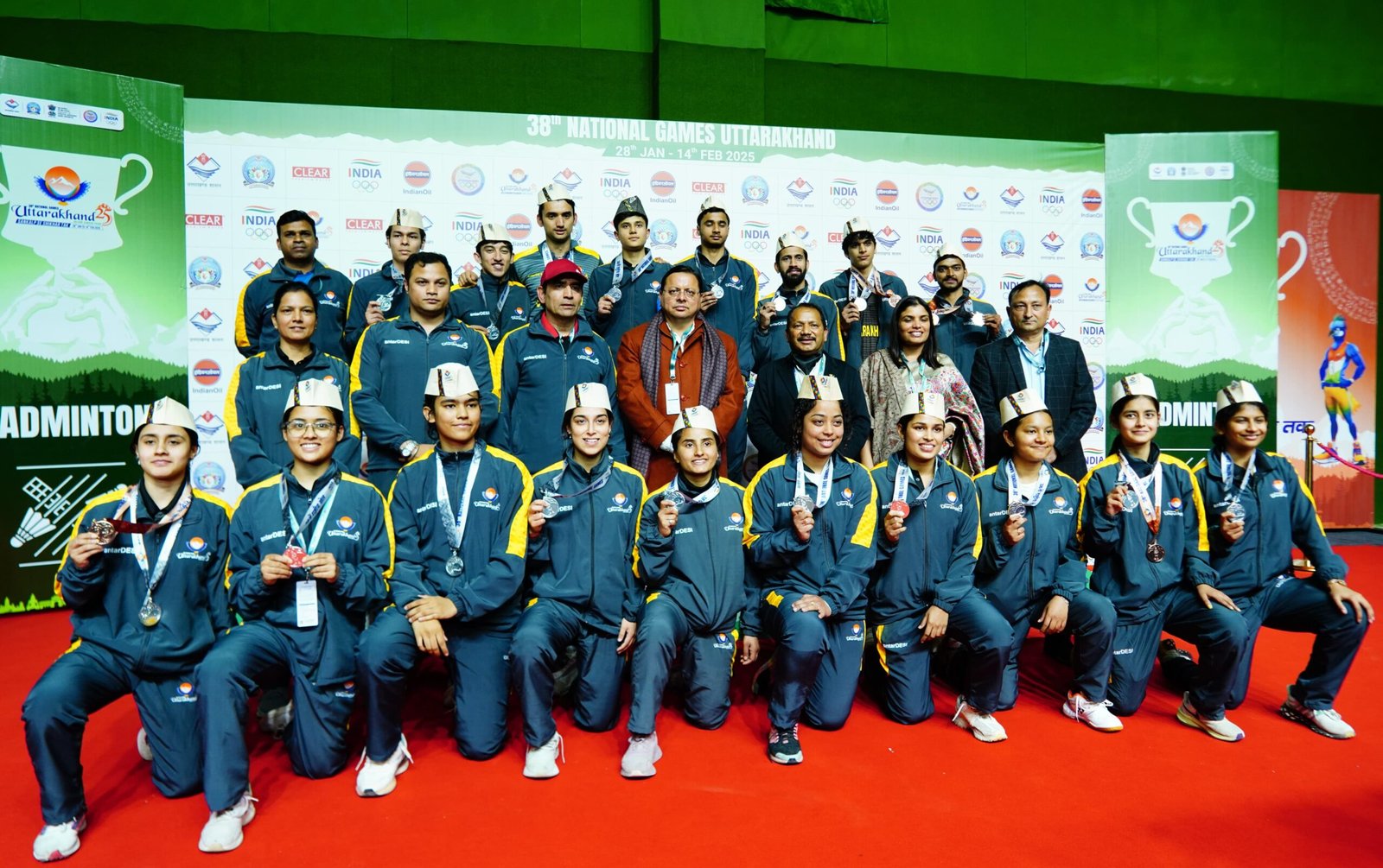 मुख्यमंत्री पुष्कर सिंह धामी ने मंगलवार को परेड ग्राउण्ड, देहरादून में 38वें राष्ट्रीय खेल-2025 के अन्तर्गत आयोजित बैडमिंटन प्रतियोगिता का अवलोकन किया। इस अवसर पर मुख्यमंत्री ने विजेता खिलाडियों को मेडल पहनाकर सम्मानित किया। मुख्यमंत्री ने विभिन्न राज्यों से आए खिलाड़ियों से मुलाकात कर उनका उत्साहवर्धन भी किया।