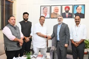 कृषि मंत्री गणेश जोशी से भेंट करते सीबीआई एग्रीकल्चर जनरल इंश्योरेंस के पदाधिकारीगण