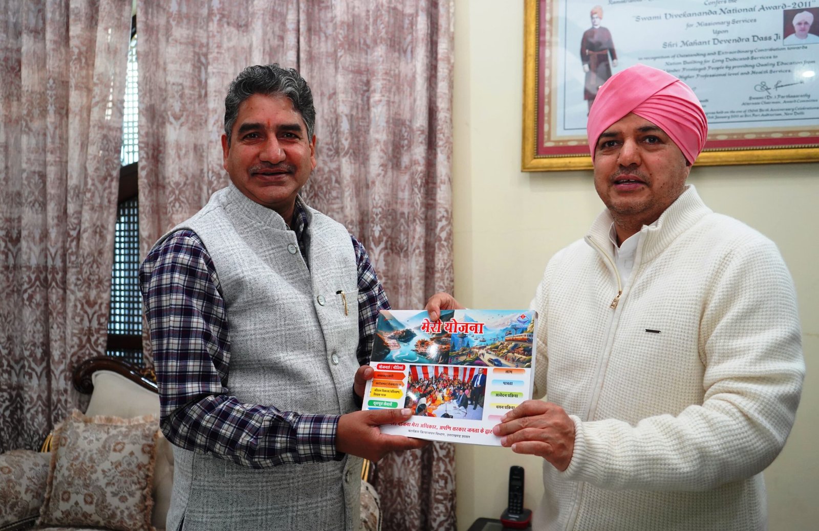 मेरी योजना की प्रतियां सचिव दीपक कुमार ने श्रीमहंत देवेन्द्र दास जी महाराज जी को भेंट की