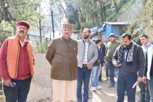 मसूरी, 13 फरवरी। प्रदेश के कैबिनेट मंत्री गणेश जोशी ने आज मसूरी पहुंचकर बरसात के दौरान क्षतिग्रस्त हुए कैमल बैक रोड के निर्माण कार्यों का जायजा लिया। इस दौरान उन्होंने संबंधित अधिकारियों को निर्देश दिए कि निर्माण कार्य को शीघ्र पूर्ण किया जाए और गुणवत्ता से कोई समझौता न किया जाए। उन्होंने अधिकारियों को स्पष्ट रूप से एक सप्ताह के भीतर कार्य पूरा करने का निर्देश दिया।