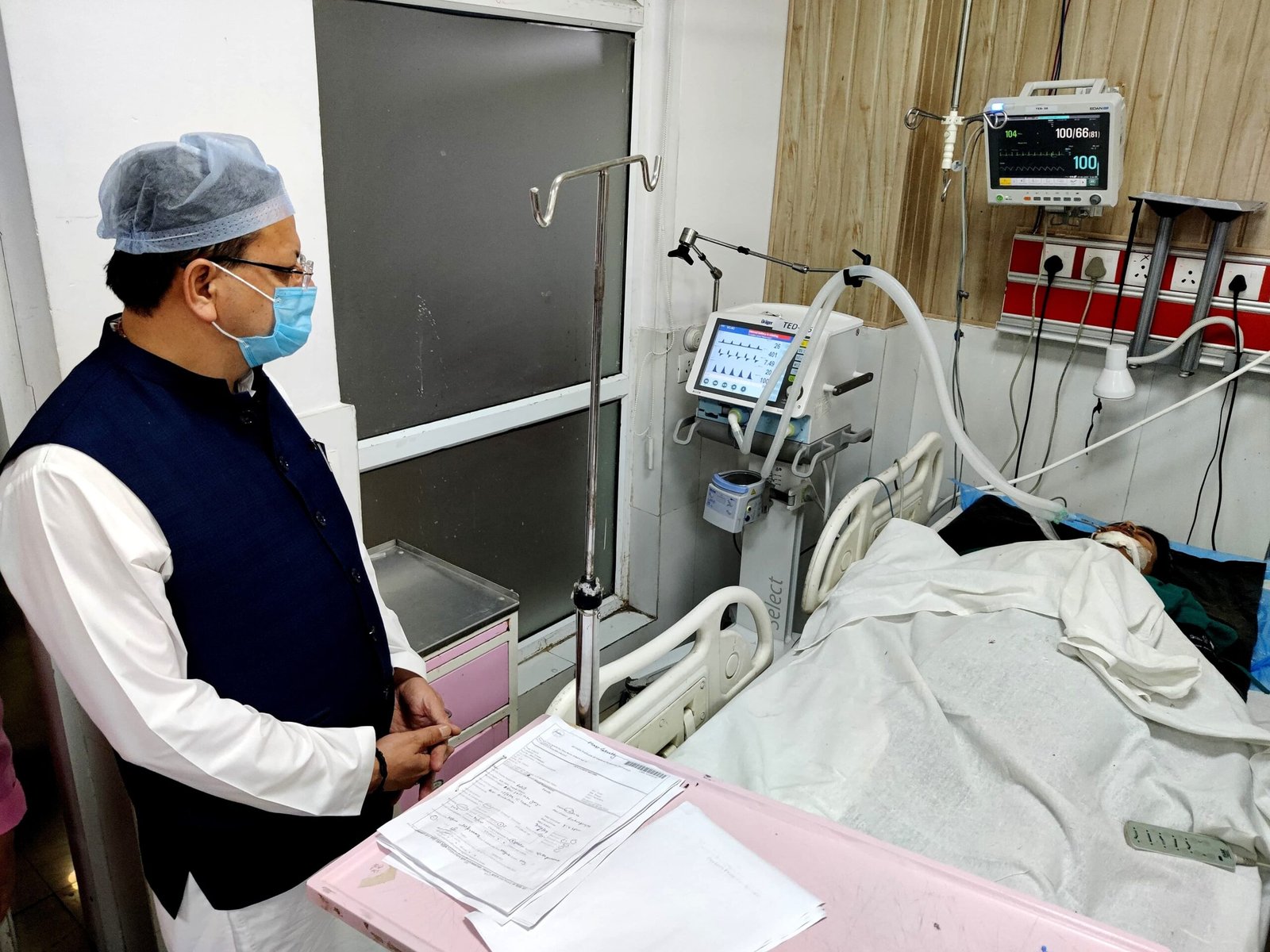 मुख्यमंत्री धामी ने इस दौरान चिकित्सकों से घायलों के उपचार के विषय में जानकारी भी ली