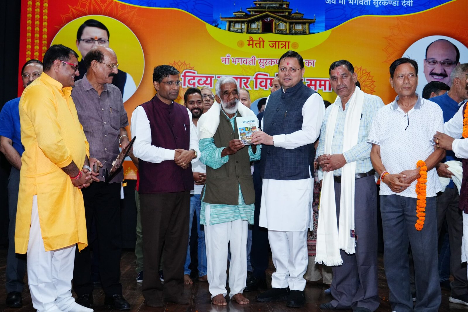 मुख्यमंत्री श्री पुष्कर सिंह धामी शनिवार को आई आर डी टी ऑडिटोरियम देहरादून में हिमालयन हेरिटेज सोसाइटी द्वारा आयोजित भगवती सुरकंडा मां दिव्य जागर विमोचन समारोह में शामिल हुए| मुख्यमंत्री ने जागर गायक श्री प्रीतम भरतवाण के सुरकंडा देवी पर जागर का विमोचन किया |