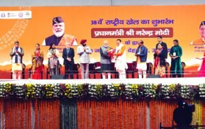 मंगलवार शाम को देहरादून में राजीव गांधी इंटरनेशनल क्रिकेट स्टेडियम में आयोजित उद्घाटन समारोह को संबोधित करते हुए प्रधानमंत्री नरेंद्र मोदी ने कहा कि देवभूमि उत्तराखंड आज युवा ऊर्जा से और भी दिव्य हो उठा है, बाबा केदार, बद्ररीनाथ जी, मां गंगा के शुभाशीष के साथ आज यहां नेशनल गेम्स शुरू हो रहे हैं। प्रधानमंत्री ने कहा कि ये वर्ष उत्तराखंड के निर्माण का 25वां वर्ष भी है, इस खास अवसर पर इस युवा राज्य में देश के अलग- अलग हिस्सों से आए, हजारों युवा अपना सामर्थ्य दिखाने वाले हैं। इससे यहां एक भारत, श्रेष्ठ भारत की सुंदर तस्वीर नजर आ रही है। प्रधानमंत्री ने शानदार आयोजन के लिए उत्तराखंड के मुख्यमंत्री पुष्कर सिंह धामी और उनकी टीम को बधाई दी।
