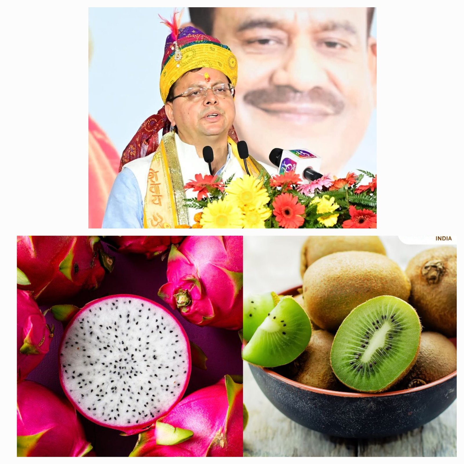 इसी तरह उत्तराखण्ड कीवी नीति के तहत वर्ष 2030-31 तक राज्य सरकार कीवी उद्यान स्थापना के लिए कुल लागत 12 लाख प्रति एकड़ का 70 प्रतिशत राजसहायता प्रदान करेगी। जिसमें 30 प्रतिशत लाभार्थी का अंश होगा। यह नीति भी हरिद्वार एवं उधमसिंहनगर को छोड़कर राज्य के शेष 11 जनपदों में लागू होगी। कीवी पालिसी के अन्तर्गत कुल रु0 894 करोड की कार्ययोजना तैयार की गई है, नीति के तहत 3500 हैक्टेयर क्षेत्रफल को आच्छादित किये जाने का लक्ष्य है, जिसमे करीब 17500 किसान लाभान्वित होंगे। अभी राज्य के लगभग 683 हैक्टेयर के क्षेत्रफल में 382 मैट्रिक टन कीवी का उत्पादन किया जा रहा है। इसी तरह ड्रैगन फ्रूट खेती योजना के उधमसिंहनगर, हरिद्वार, नैनीताल, बागेश्वर, पौड़ी, देहरादून, टिहरी में ड्रैगन फ्रूट के उत्पादन को आधुनिक / वैज्ञानिक पद्यति के माध्यम से बढ़ावा दिया जाएगा। योजना के तहत वर्ष 2027-28 तक15 करोड़ की धनराशि खर्च की जाएगी। जिससे 450 किसान लाभांवित होंगे। प्रस्तावित योजना में उद्यान स्थापना के लिए 08 लाख प्रति एकड़ का 80 प्रतिशत राजसहायता का प्राविधान है एवं शेष 20 प्रतिशत कृषक द्वारा वहन किया जाएगा। वर्तमान में राज्य के लगभग 35 एकड़ क्षेत्रफल में 70 मै०टन ड्रैगन फ्रूट का उत्पादन किया जा रहा है।