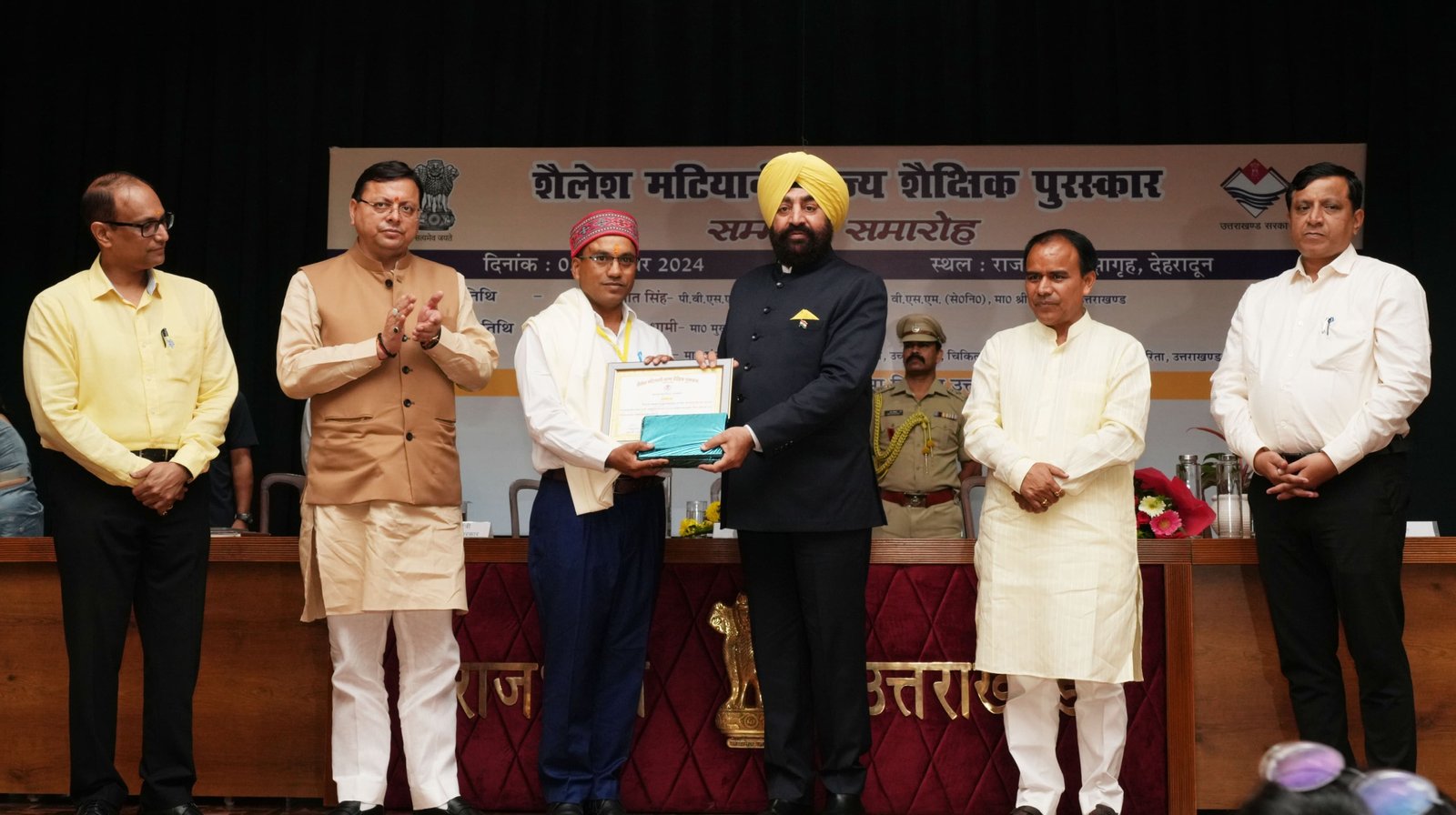 ‘‘शैलेश मटियानी राज्य शैक्षिक पुरस्कार’’ सम्मान समारोह में राज्यपाल लेफ्टिनेंट जनरल गुरमीत सिंह (से नि), मुख्यमंत्री पुष्कर सिंह धामी और शिक्षा मंत्री डॉ. धन सिंह रावत ने वर्ष 2023 में शैलेश मटियानी राज्य शैक्षिक पुरस्कारों के लिए चयनित शिक्षक एवं शिक्षिकाओं को सम्मानित किया। शिक्षक दिवस के अवसर पर राजभवन में आयोजित सम्मान समारोह में वर्ष 2023 के लिए चयनित 19 शिक्षकों एवं शिक्षिकाओं को पुरस्कार प्रदान किए गए है।