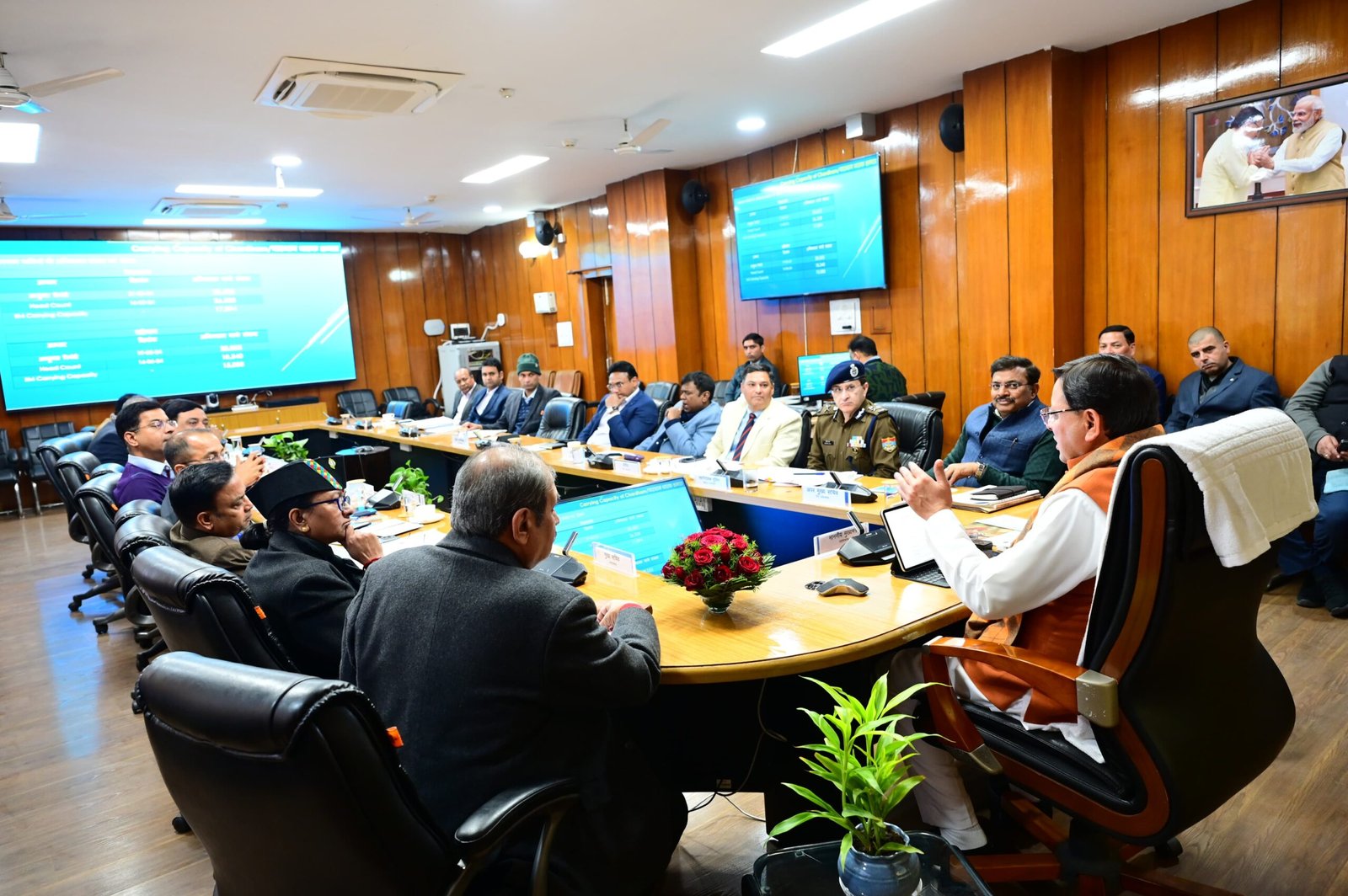 बैठक में अवस्थापना अनुश्रवण परिषद के उपाध्यक्ष श्री विश्वास डाबर, मुख्य सचिव श्रीमती राधा रतूड़ी, अपर मुख्य सचिव श्री आनंद बर्द्धन, प्रमुख सचिव श्री आर. के. सुधांशु, डीजीपी श्री दीपम सेठ, सचिव श्री आर. मीनाक्षी सुंदरम, श्री शैलेश बगोली, श्री सचिन कुर्वे, डॉ. पंकज पाण्डेय, श्री बृजेश कुमार संत, श्री एच.सी. सेमवाल, श्री विनय शंकर पाण्डेय, डॉ. आर. राजेश कुमार, अपर पुलिस महानिदेशक श्री ए.पी अंशुमन, उपाध्यक्ष एमडीडीए श्री बंशीधर तिवारी एवं वर्चुअल माध्यम से चारधाम यात्रा से जुड़े जनपदों के जिलाधिकारी और पुलिस अधीक्षक उपस्थित थे।