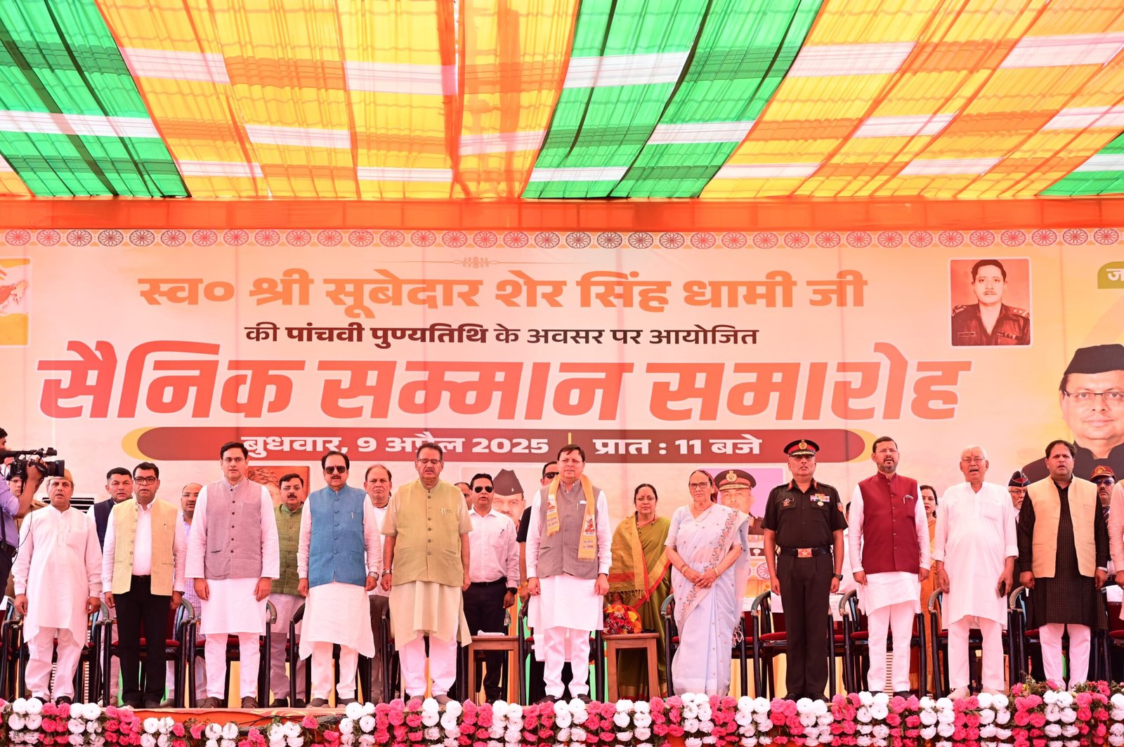 मुख्यमंत्री पुष्कर सिंह धामी ने बुधवार को खटीमा स्थित तराई बीज विकास निगम के मैदान में सेवा संकल्प धारिणी फाउंडेशन द्वारा स्व0 सूबेदार श्री शेर सिंह धामी की पाँचवी पुण्यतिथि पर आयोजित *गौरव सैनिक सम्मान समारोह* में बतौर मुख्य अतिथि के रूप में प्रतिभाग किया।