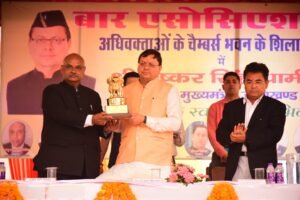 मुख्यमंत्री धामी ने मंगलवार को न्यायिक परिसर (पुरानी जेल) देहरादून में बार एसोसिएशन देहरादून के नवीन भवन का शिलान्यास और भूमि पूजन किया